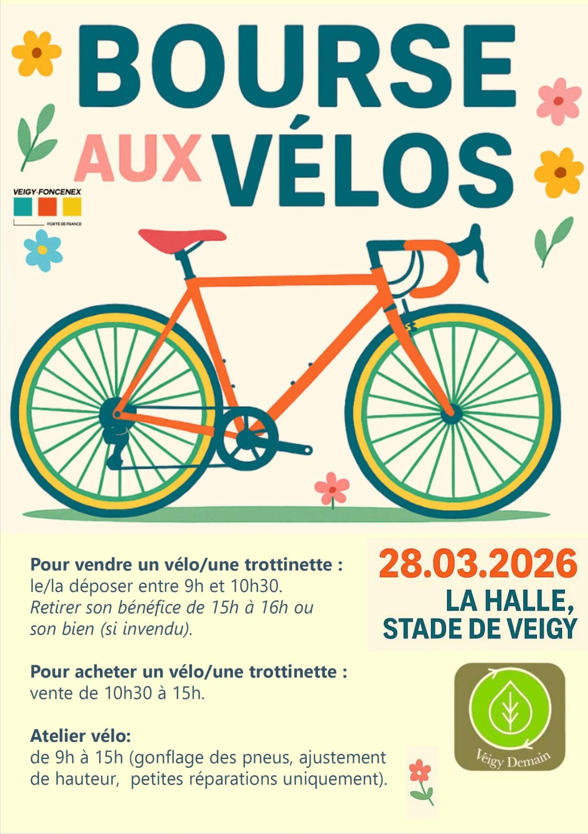 - Veigy Demain se réserve le droit de refuser la vente de vélos/trottinettes en mauvais état.