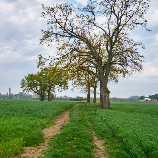 | Suivez cette douce sente (150 mètres ) jusqu’au chemin des Bois du Château. Prenez à gauche et continuez jusqu’à une nouvelle croisée de chemins, au lieu dit « la Chêne à Charles ». Prenez à droite le chemin de la Voie Creuse, ou Vy Creuse. Autrefois le chemin était bordé de talus mais ceux-ci ont été complètement comblés. | ![]() |