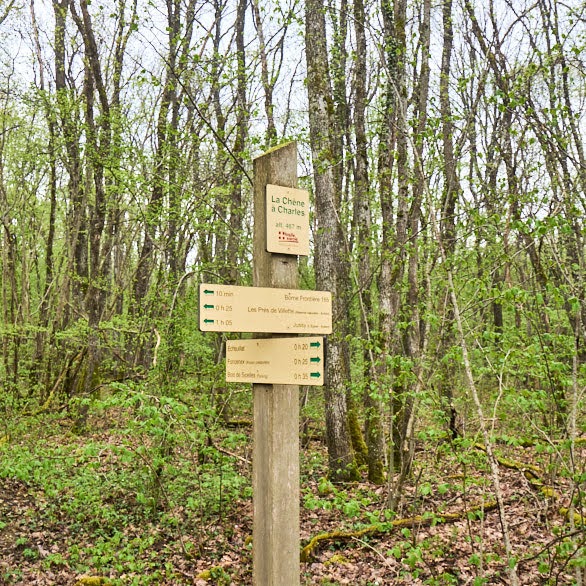 | Au bout du chemin prenez à gauche sur le chemin de Beaupré: vous êtes maintenant sur Suisse. Rapidement vous arrivez dans le charmant village de Gy. | ![]() |