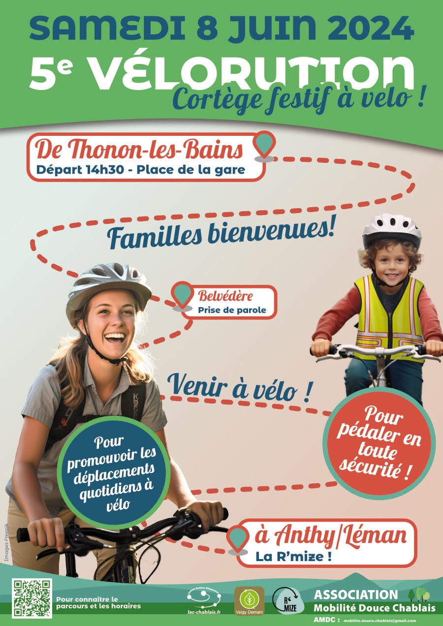 Départ de Veigy à 12h30 depuis le chapiteau du stade, pour rejoindre Thonon à 14h30 avec vos proches, familles, ami-e-s et collègues, et surtout vos vélos !